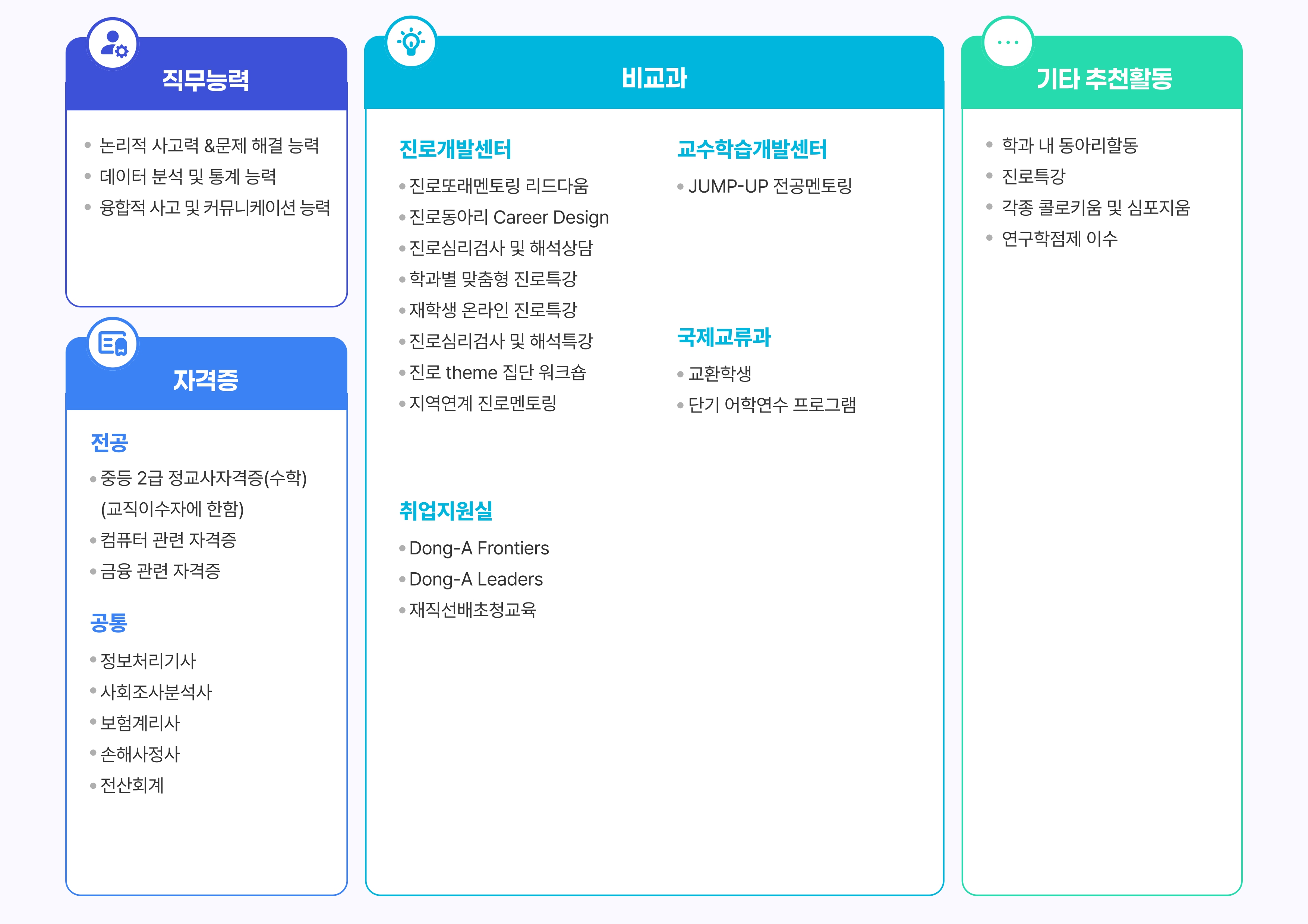 취업안내 열린 미래 꿈이있는 대학, 동아대학교 메인으로 이동 취업안내 학과소개 학사안내 장학금 안내 학과소식 취업안내 자료실 닫기 진로 및 취업 진로 및 취업 닫기 Edumap Edumap Job tree 닫기 취업안내 취업안내 진로 및 취업 Edumap Job tree Edumap Job tree 진로 및 취업 SNS 목록열기 FACEBOOK 공유하기 TWITTER 공유하기 BLOG 공유하기 SNS 목록닫기 인쇄 url 복사 Edumap Job tree